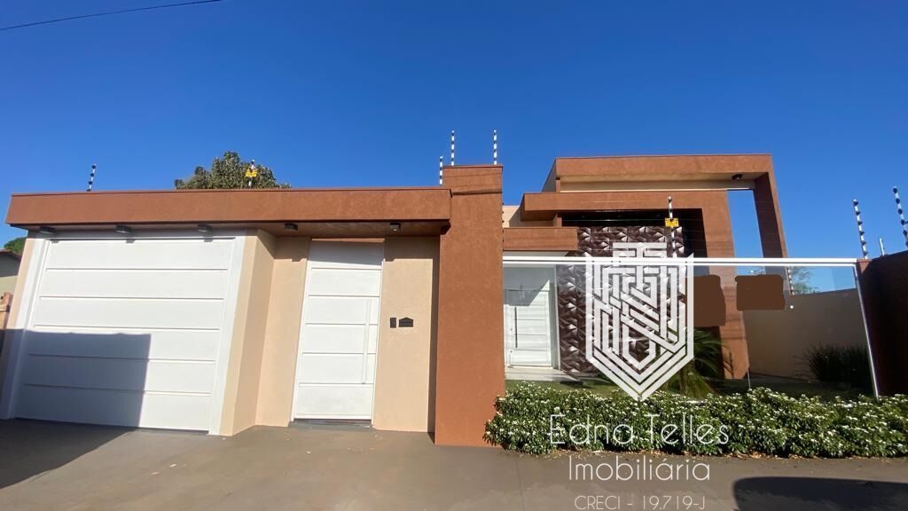 Vendo essa casa com amplo espaço de área construída, 360m² de construção num terreno medindo 15x45m. São 2 salas, sendo uma com pé direito duplo, escritório com lavabo, total de 5 banheiros com box, 3 suítes, sendo 1 master com banheira e closet, quarto na área externa da casa, área de serviço com lavanderia e despensa, garagem coberta para 3 caminhonetes, área gourmet com ilha, churrasqueira e banheiro, cortineiro no gesso em todas as janelas, iluminação toda em LED, cerca elétrica, portão eletrônico, interfone, energia solar, piscina com cascata e jardim, telhas isotérmicas e muro de vidro. Imóvel novo.